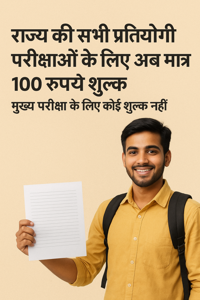 राज्य की सभी प्रतियोगी परीक्षाओं के लिए अब मात्र 100 रुपये शुल्क
