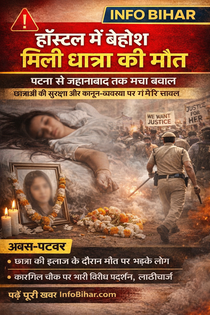 पटना के चित्रगुप्त नगर थाना क्षेत्र स्थित शंभू गर्ल्स हॉस्टल में बेहोशी की हालत में मिली एक छात्रा की इलाज के दौरान मौत हो जाने से पूरे प्रदेश में आक्रोश का माहौल बन गया है। यह घटना न सिर्फ कानून-व्यवस्था बल्कि छात्राओं की सुरक्षा व्यवस्था पर भी गंभीर सवाल खड़े कर रही है।