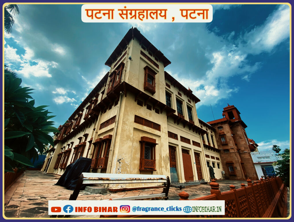 The Patna Museum Established in 1917 during the BRITISH RAJ to house the historical artefacts found in the vicinity of Patna , it is in the style of Mughal and Rajput Architecture and is known locally as the Jadu Ghar. Most of the early collections have now been transferred to Bihar Museum .
